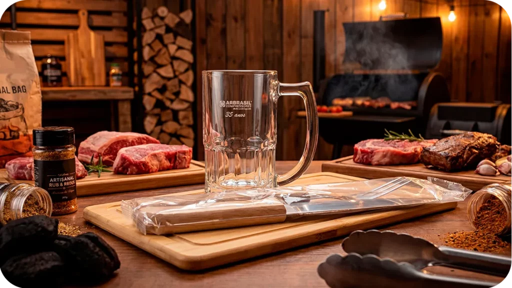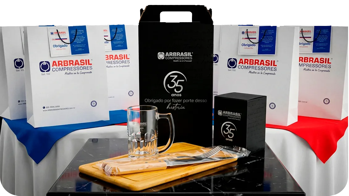 A AR Brasil Compressores é cliente da Só Marcas desde 2022, período em que passou a utilizar nossos Kits Para Churrasco com Copos como parte do processo de onboarding no acolhimento de novos colaboradores.