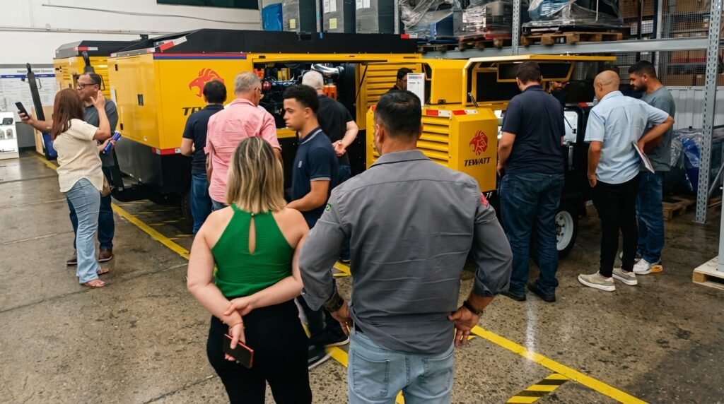 Para celebrar os 35 anos, a AR Brasil organizou um evento fechado em sua sede, reunindo 18 clientes e parceiros estratégicos. O encontro teve como objetivo apresentar um novo produto — um compressor Diesel da TEWATT — e, ao mesmo tempo, fortalecer relacionamentos comerciais em um ambiente mais próximo e consultivo.